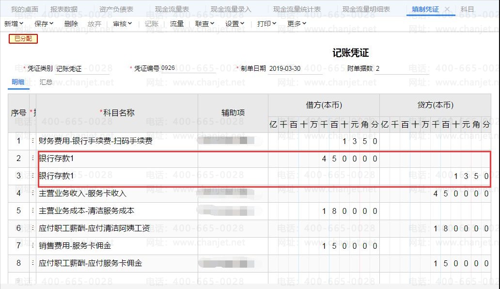 3、“不影响现金流量的项目”是指同一张凭证中现金流量科目既有借方发生,又有贷方发生,比如银行存取款业务等;这时我们可以去找此类凭证,检查它们的现金流量分配明细;