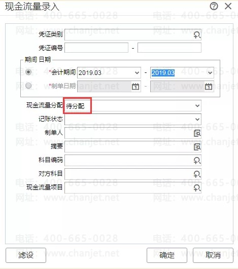 在【现金流量录入】处筛选“现金流量分配”为“待分配”;