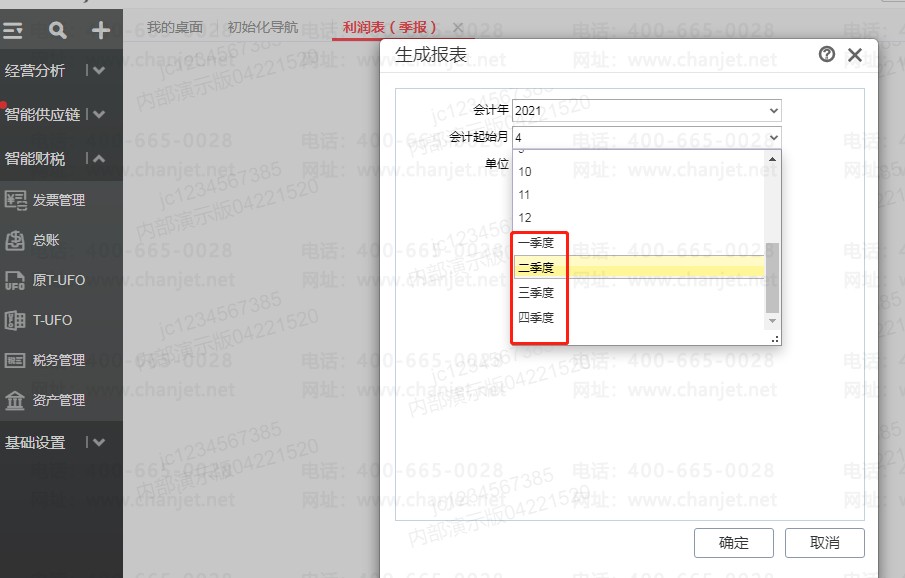 问题解答:用友T+软件支持季度报表出具,而且特别方便,只是选择关键词时需要特别注意,需要选择(一季度、二季度等汉字);数据才会正确;