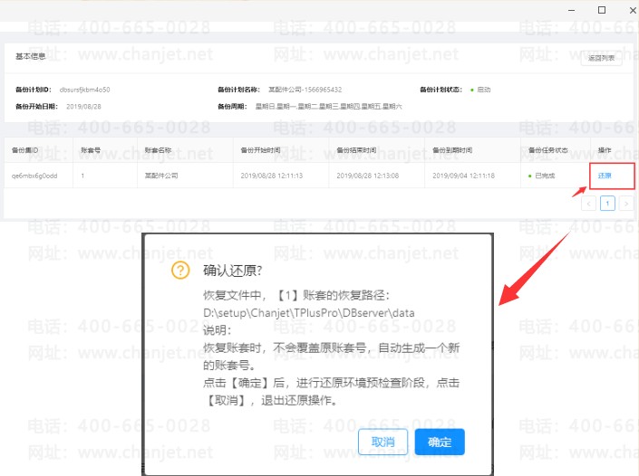 【小贴士】:服宝安全-数据库云备份是款云端应用,可自动识别所使用产品的账套,一键配置备份计划时,可直接选择需备份的账套,不占电脑内存, 备份、还原双向检测预警提醒。