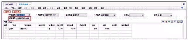 z会计:我们单位的采购流程是采购订单-进货单-采购入库单。库管现在想要在采购入库单上看到是由哪笔订单生成的,并且打印出来,可是库管发现在采购入库单上怎么找都找不到订单号。