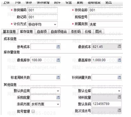 设置好后,在库存信息中,就可以看到该库存的默认条形码了。