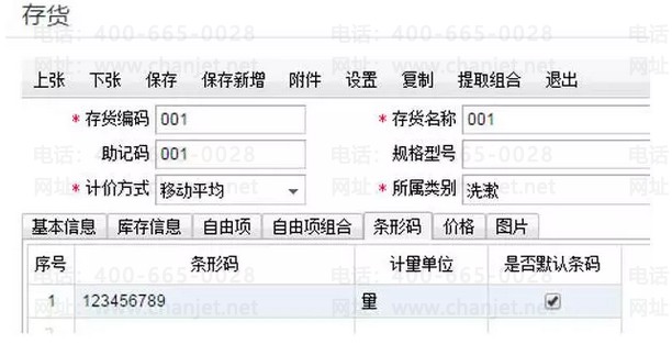 首先,在存货档案中条形码页签中,设置一个默认条形码。