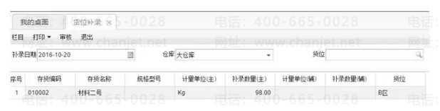 如果补录的货物放错了位置也不要紧,可以使用货位调整单来解决。