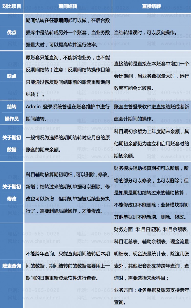 直接结转分为直接结账过渡到次年和新建会计期间过渡到次年,在数据库后台中是同一 个数据库