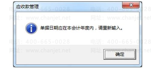请注意,应收应付模块中是不允许录入新年度的收、付款单,也不能审核新年度的发票,会有如下提示: