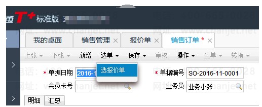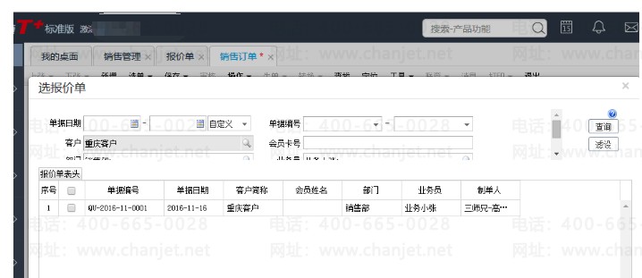3、查询勾选需要生成销售订单的报价单,点击确定