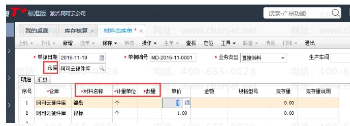 自制领料(由生产加工单生成材料出库单时默认业务类型)