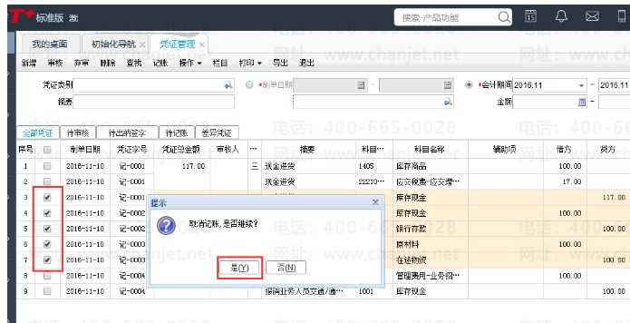 4、勾选取消记账凭证,按快快捷键CTRL+ALT+H,点击确定