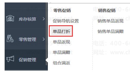 1、模块列表中点击促销管理——单品打折