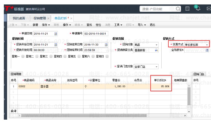 用友T+12.1怎样设置商品打折