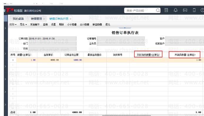 1、模块列表中点击销售管理——销售订单执行表