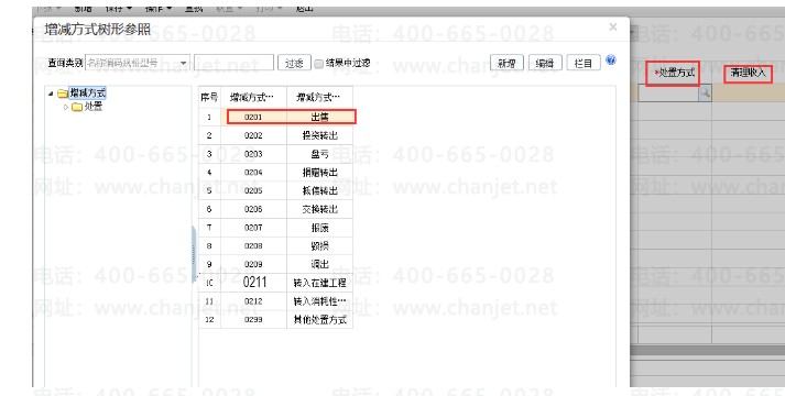 4、填写出售卡片编号,选择处置方式,填写清理收入