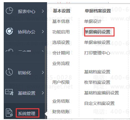 1、左边模块列表点击系统管理——单据编码设置