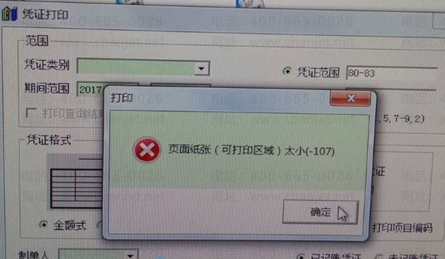 问题现象:用友软件在打印凭证时提示“打印错误107”