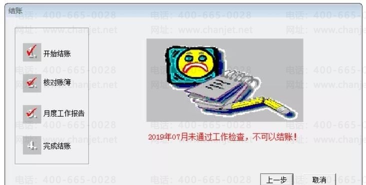 当你谨慎小心的检查完账务是否漏记错记,准备月末结账后进行凭证、各种账表的打印、装订和财务报表的出具时,出现以下的画面,相信你一定是很绝望的。