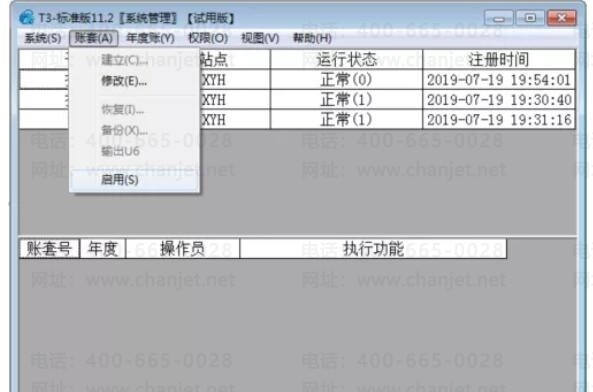 Step1.首先,用账套主管身份登录系统管理,依次点击【账套】-【启用】,如下图所示