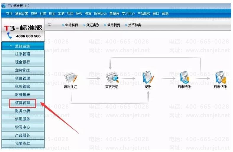 那么问题来了,存货系统未结账?可是我软件中根本就没有看到存货系统这个模块呀。其实,提示中的存货系统指的就是软件的【核算管理】模块