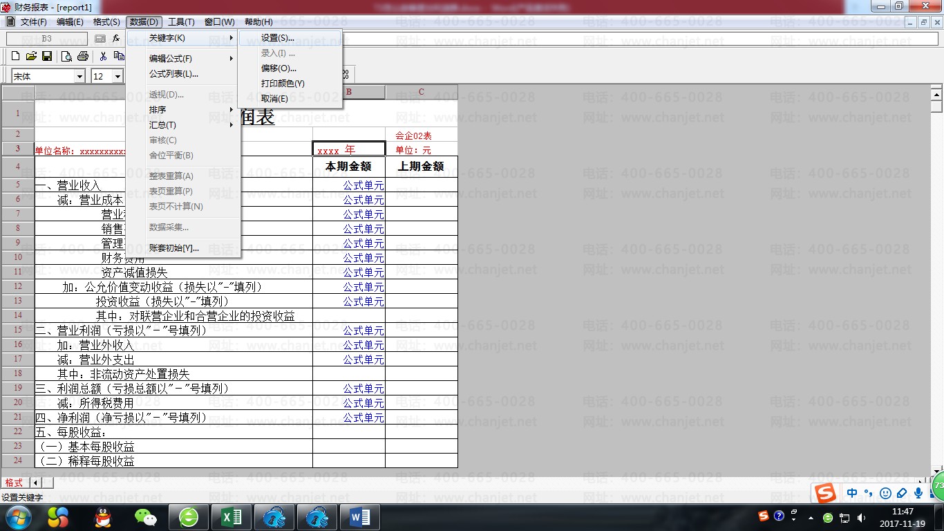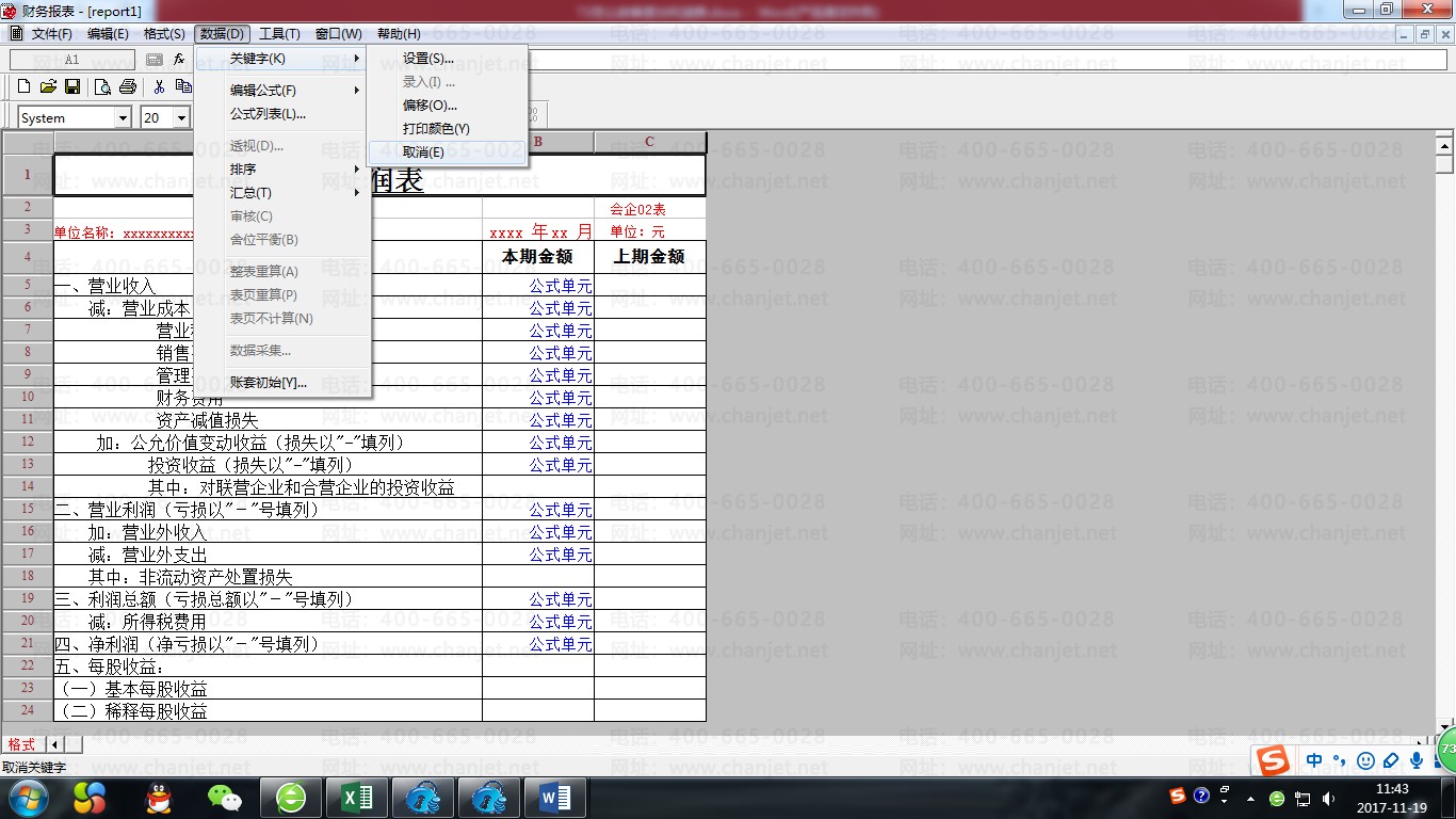 1、打开利润表,在格式状态下-选择数据菜单栏-关键字-取消