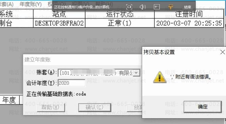 用友T3新建2020年度账出现 “,”附近有语法错误