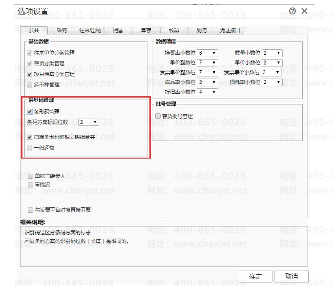 在T+中使用条形码首先得在选项中启用条形码管理的选项,功能入口:【系统】-【账套设置】-【选项设置】-【公共】-【条形码管理】