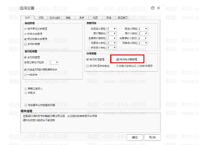 启用商品有效期管理属性入口:【基础设置】-【业务信息设置】-【存货】-【存货档案卡片】-【库存信息】-【有效期管理】