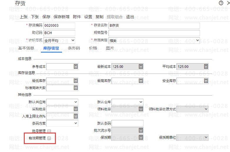 启用有效期管理的存货,在录出入库单据时,需要录入生产日期和失效日期才可以保存单据。