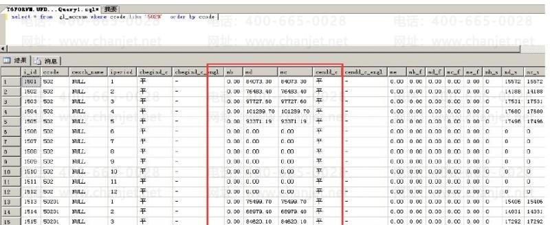 有可能是因为gl_accsum 表出错, 然后检查总账是否对账不平,结果显示对账平衡。Sel ect * f rom gl_accsum whe re ccode like ‘%502%’ 查询结果如下: