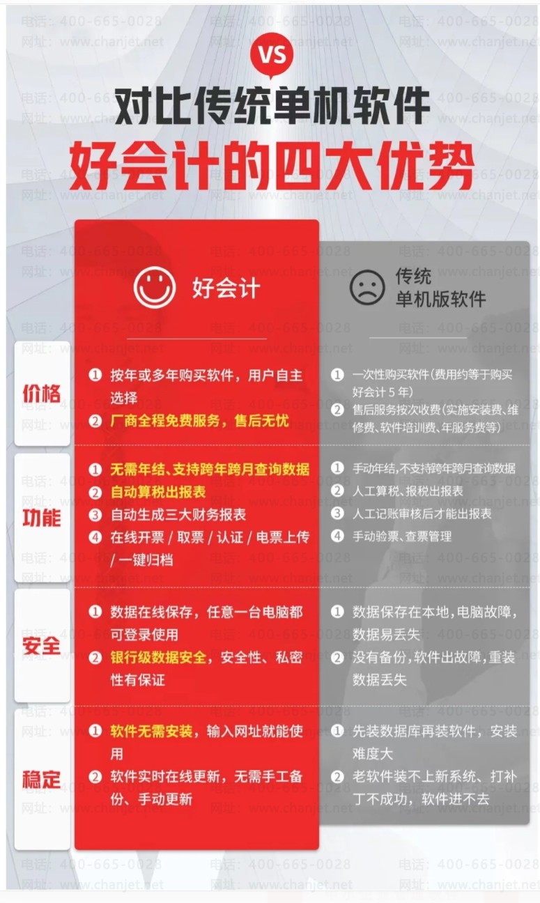 | 好会计 | 普及版 | 498元/年 | 1用户/3账套 | - | 20元/账套/年 | 1998元/年 | - |