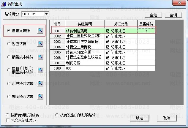 (5)a、依次点击“总账”-“期末”-“转账生成”,选择“自定义转账”,选择需要结转的项目(结转制造费用):