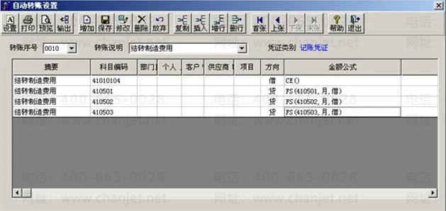 (3)点击“增行”按钮,继续输入分录,输入相关科目编码、方向、取数公式。