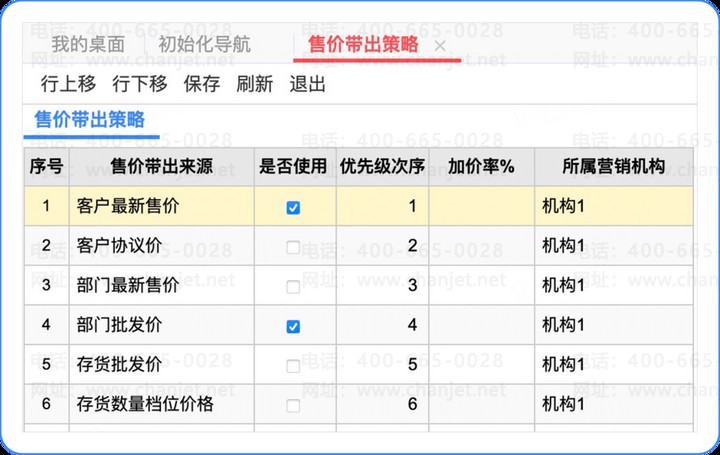 2)部门批发价:如果分支机构需要对所有的存货都需要设置自己机构的批发价,需要使用部门批发价的策略。可以设置自己机构下的部门批发价。