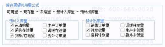 可用量计算公式:可用量=现存量-冻结量+预计入库量-预计出库量