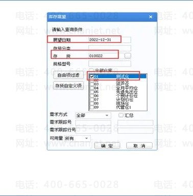 (2)选择存货和仓库查询库存展望,查询条件中,展望日期填写大一些,避免单据日期在展望日期之后而无法查询数据;