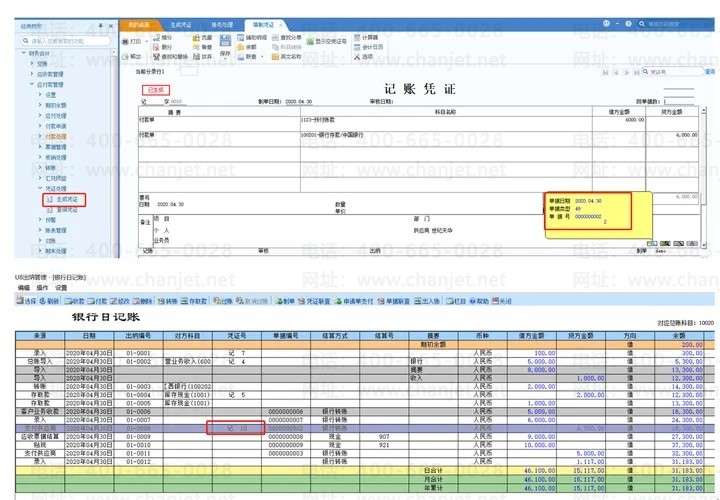 6. 生成凭证,收支操作业务只能在应收应付模块制单,制单后出纳日记账中回写凭证号。