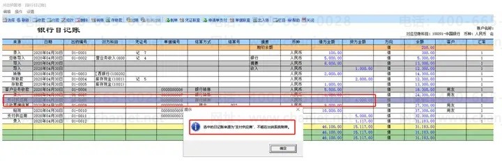 5、银行日记账界面回写数据,来源显示为“支付供应商”。