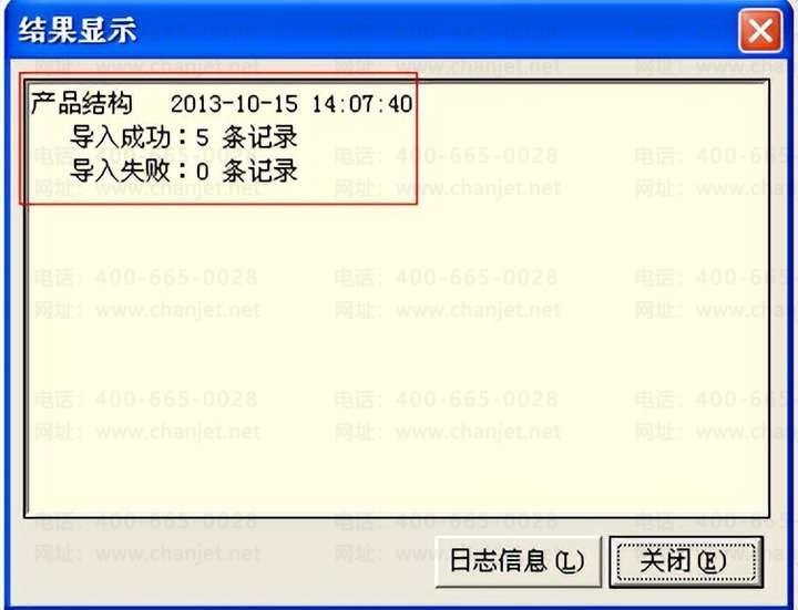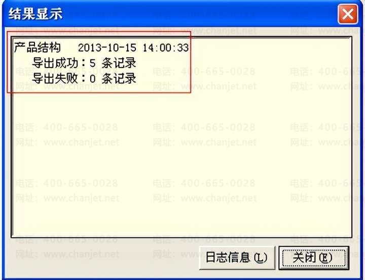 点击确定和保存全部按钮,退出回到导入导出界面点击“执行”按钮,会显示结果,如下图;