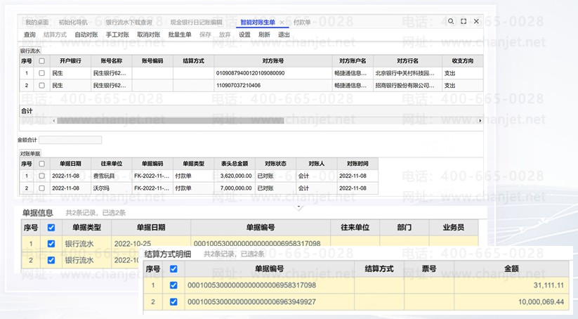 支持银行:“工商银行;农业银行;招商银行;民生银行;广发银行;兴业银行;交通银行;邮政储蓄”支持流水下载、对账生单或生成日记账、凭证。