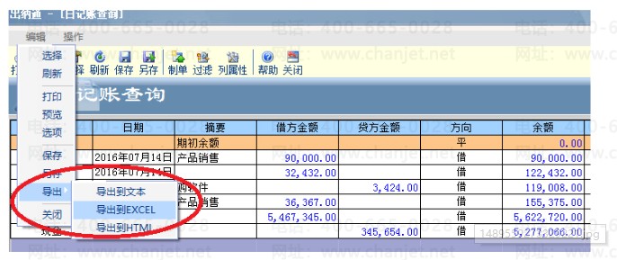 2.首先,进入出纳日记账查询中,选择账户,期间选择1-12期,查询后,点击编辑-导出-导出到excel