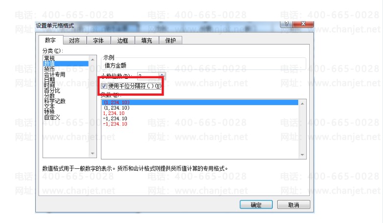 5.然后选中借贷方金额这两列,鼠标右键单击,点击设置单元格格式,类型选择数值,并勾选使用千位分隔符:
