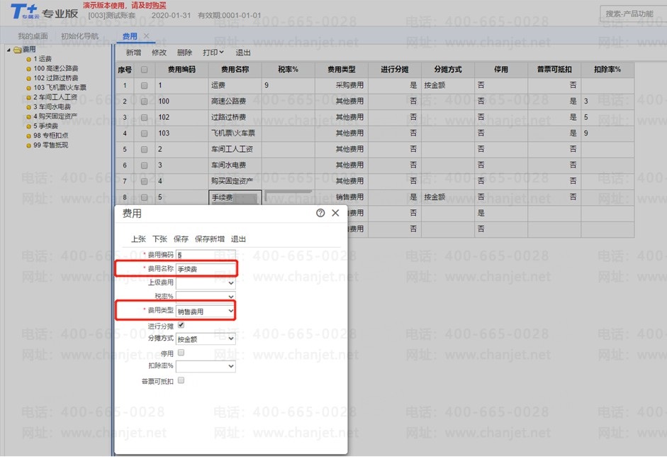 1、点击【基础档案】-【费用】-增加费用档案【手续费】