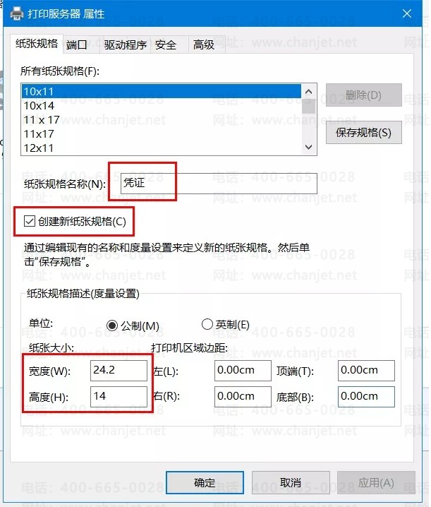 打开计算机的控制面板,设备和打印机,单击打印机图标(打印凭证的那台),上方会出现【打印服务器属性】,勾选创建新表单,输入名称纸型,如凭证,输入纸型的尺寸,单位一般是厘米,确定即可。