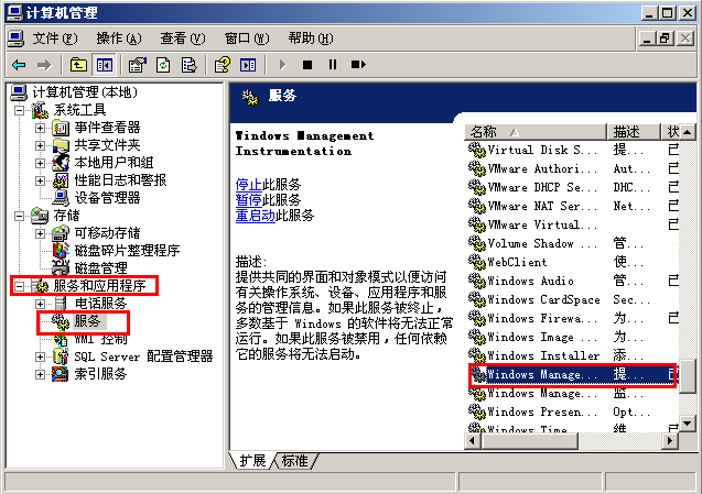 a、桌面上选择“我的电脑”,右击,点击“管理”,选择“服务和应用程序”-“服务”