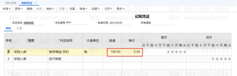 采购入库2次,数量分别是100瓶和50瓶,采购成本价分别5元和4元