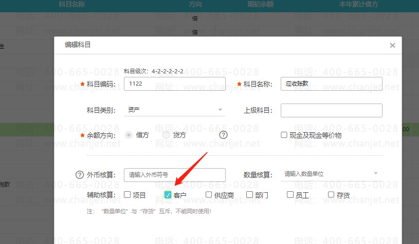3、点击【辅助核算】-【客户】,然后保存。