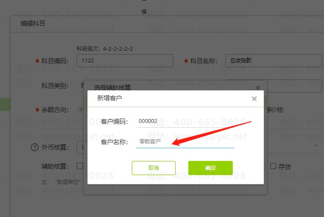 4、软件提示选择辅助核算,点击新增客户,客户名称选择零散客户后确定。