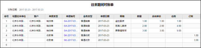 查询出来的记录中,销货单会根据明细记录的行数来显示,收款单则会根据收款单的金额匹配销货单,拆分成可核销明细的行数。