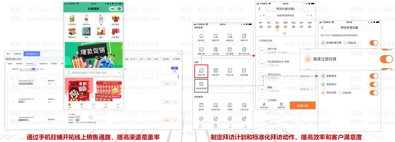 ④经营数据滞后:零售门店、批发门店、业务员访销、线上微店数据不能实时同步,老板想要查看当天的销售情况需要内勤二次汇总统计。