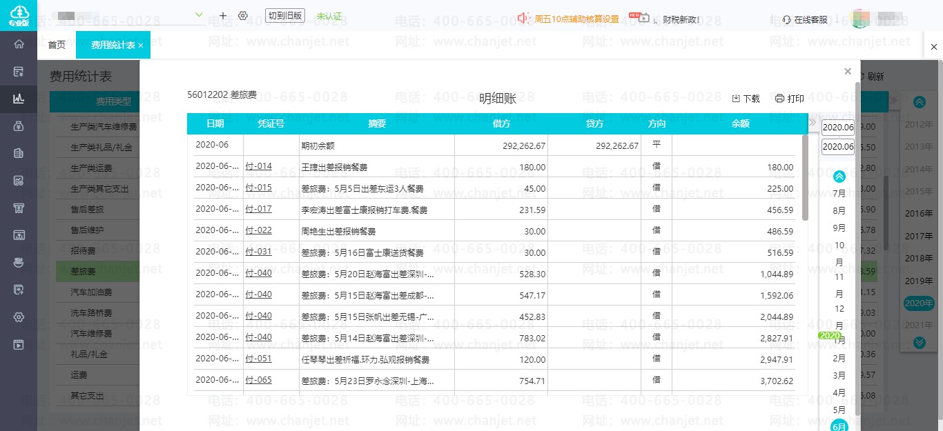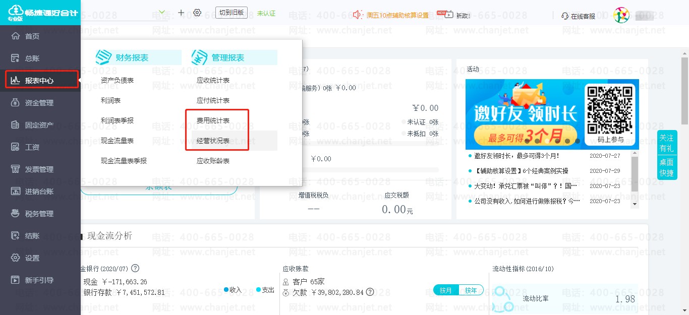 ①登录-依次点击【报表中心】-【费用统计表】或【经营状况表】,即可出现当年费用趋势图及表格数据。