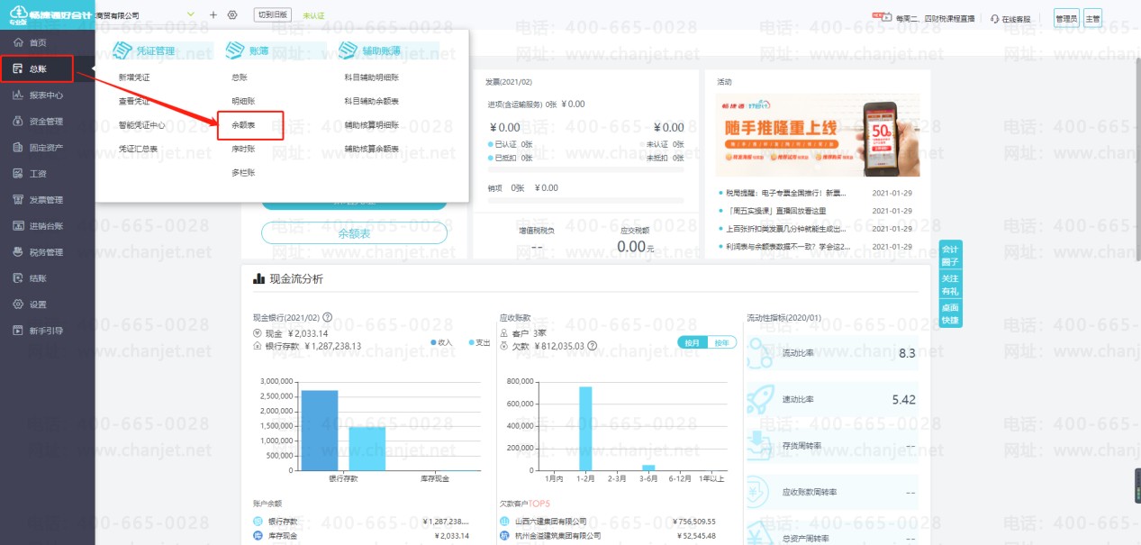 第一步:点击左侧的菜单栏【总账】-【余额表】;